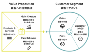 バリュープロポジション:顧客のニーズに対して、自社にしかない価値や強みをフィットさせること。